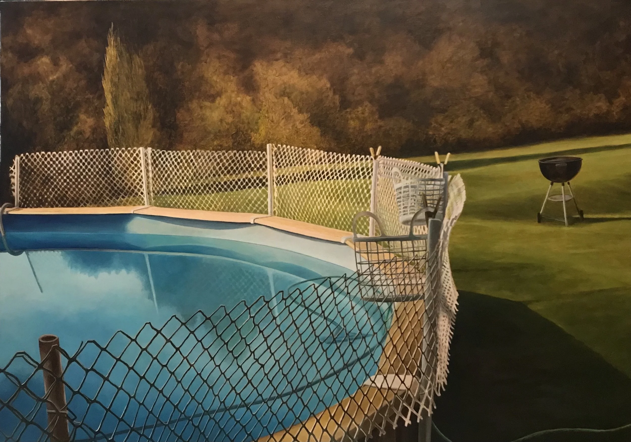 Linda Griggs, “Hamilton Fish Kiddie Pool” (oil on canvas, selective varnish) 48” x 56" (2023)