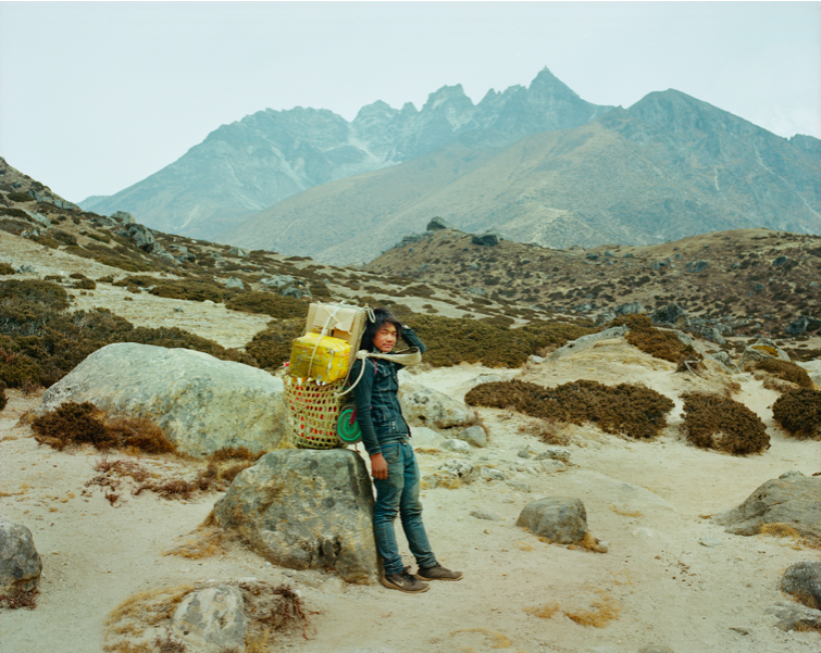 On Everest is a series of portraits and landscapes by photographer Sasha Bezzubov, created during multiple treks through Nepal’s Everest region between 2016 and 2024. Throughout these journeys, Bezzubov documented the often overlooked lives of porters, men and women hired to carry supplies across the region’s steep, unforgiving terrain. His images reveal a class of people who are ever present yet largely invisible, forming the backbone of Nepal’s tourism industry while receiving little recognition or compensation for their dangerous labor. This series continues Bezzubov’s long standing exploration of tourism and its impact in the developing world, a focus that began with his 1997 project, “The Gringo Project.”