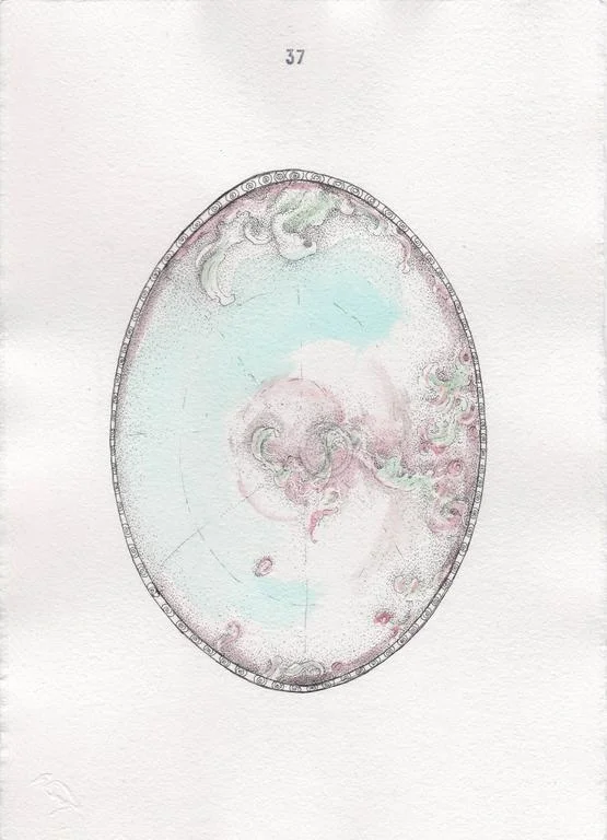 "Mapped Location of Pronounced Density" ink and watercolor, 42"x 30"